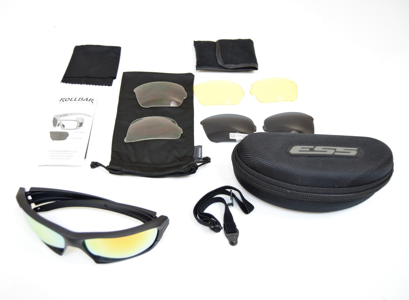 Форма линз данной модели обеспечивает широкий угол обзора, отсутствие искажения картинки, и военный уровень защиты глаз. Оправа очков ESS Rollbar имеет низкопрофильный дизайн, что позволяет использовать их с переговорными устройствами, головными уборами и шлемами любой конфигурации. Цельная оправа характеризуется высокой прочностью, износоустойчивостью и позволяет проводить быструю замену баллистических линз. Толщина линз составляет 2,2 мм, изготовлены они из высококачественного баллистического поликарбоната, способного задерживать фрагментарные частицы.