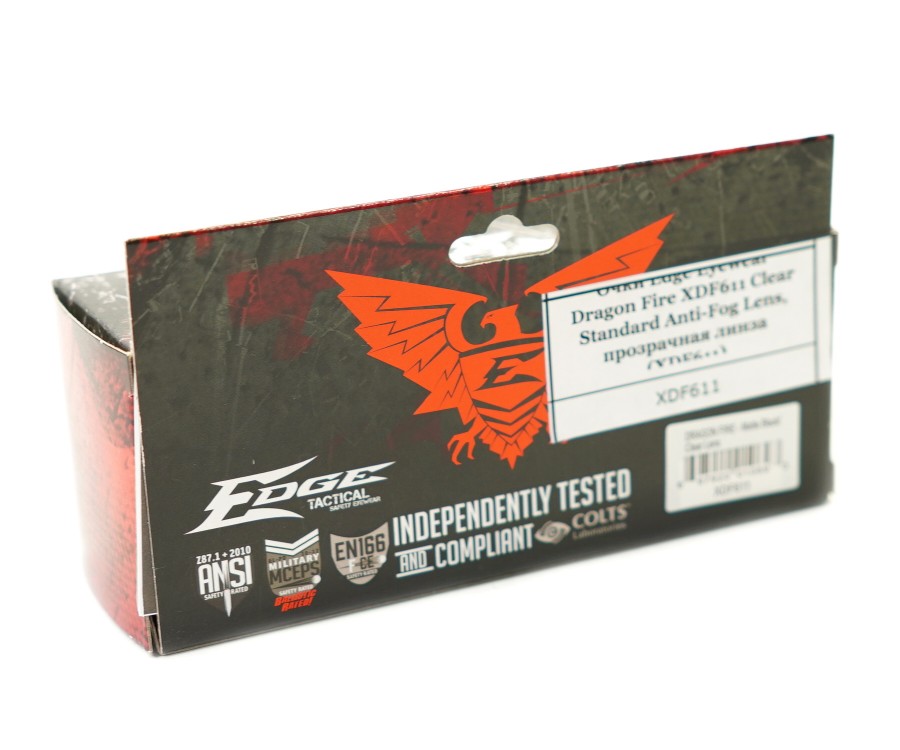 Защитные очки Edge Eyewear Dragon Fire с прозрачной линзой выпускаются под артикулом XDF611. Панорамная, без оправы, форма очков обеспечивает широкий угол обзора без искажений видимой картины. Линза выполнена из поликарбоната, который обеспечивает 99,9% защиты от UVA / UVB / UVC-лучей с покрытием Anti-Fog 3X anti-scratch coating.