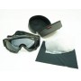 Комплект из тактических очков, одной прозрачной сменной линзы и жесткого чехла. По внутренней стороне очков идет мягкое уплотнение, что способствует плотному прилеганию к лицу. Резинка обхвата головы регулируется.