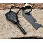 Особенностью этого огнива является кресало, на котором нанесена сантиметровая разметка и есть выемка-открывалка для бутылок.