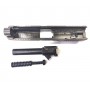 Сохранена оригинальная система запирания. Съемный ствол. Нет автоматики. Работает на мощном холостом патроне калибра 10х31.