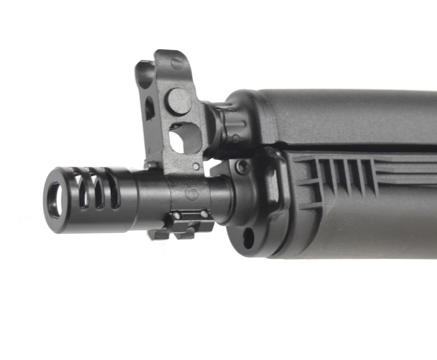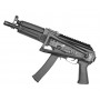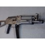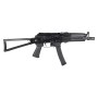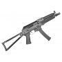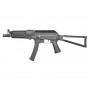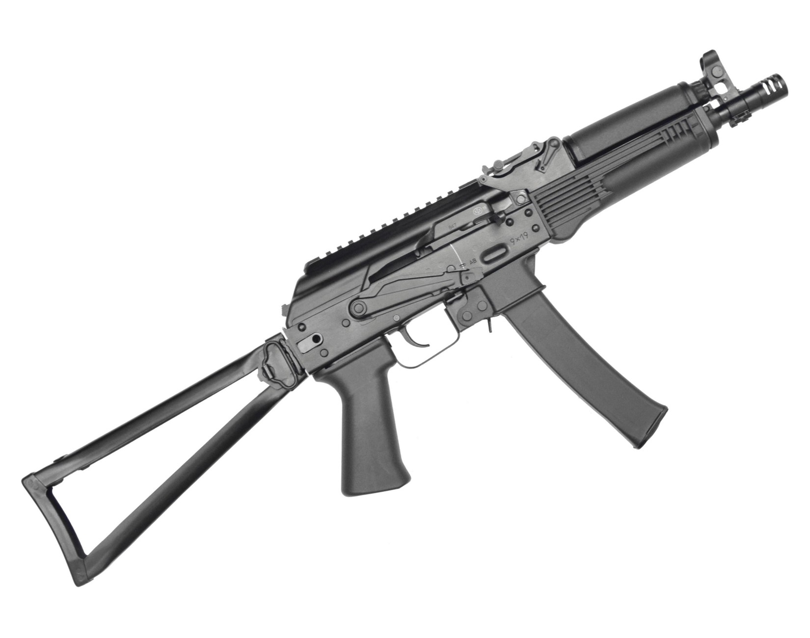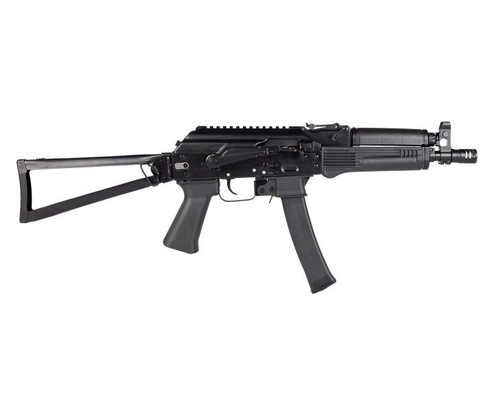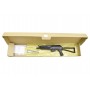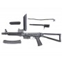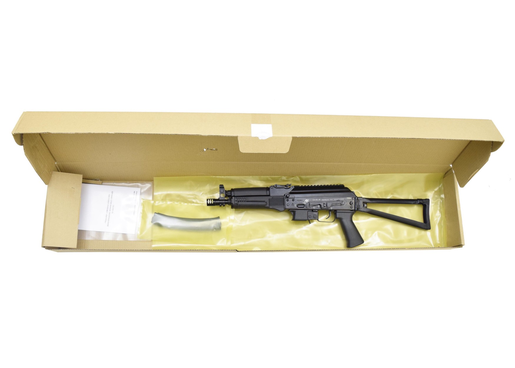 Складной рамочный приклад выполнен из стали, фиксируется на корпусе защелкой. Присутствует открытый прицельный сектор с мушкой и целиком. Две направляющие – на крышке ствольной коробки и сбоку на корпусе позволяют установить оптику или дополнительные аксессуары. Длина модели 70 см (с прикладом), вес 2,9 кг. Комплект поставки состоит из паспорта и магазина. Упаковка – картонная коробка.