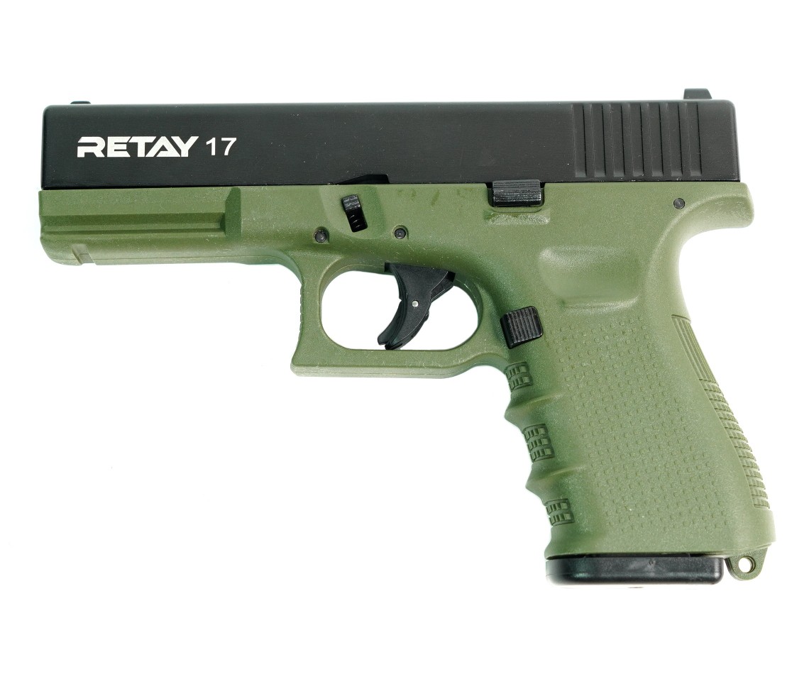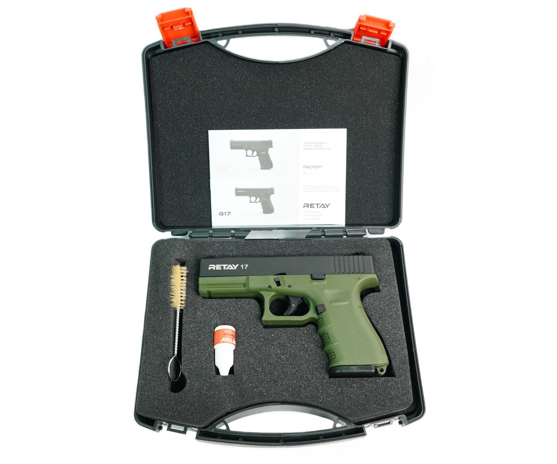 Описание охолощенный СХП пистолет Retay Glock 17, 9mm P.A.K Green: