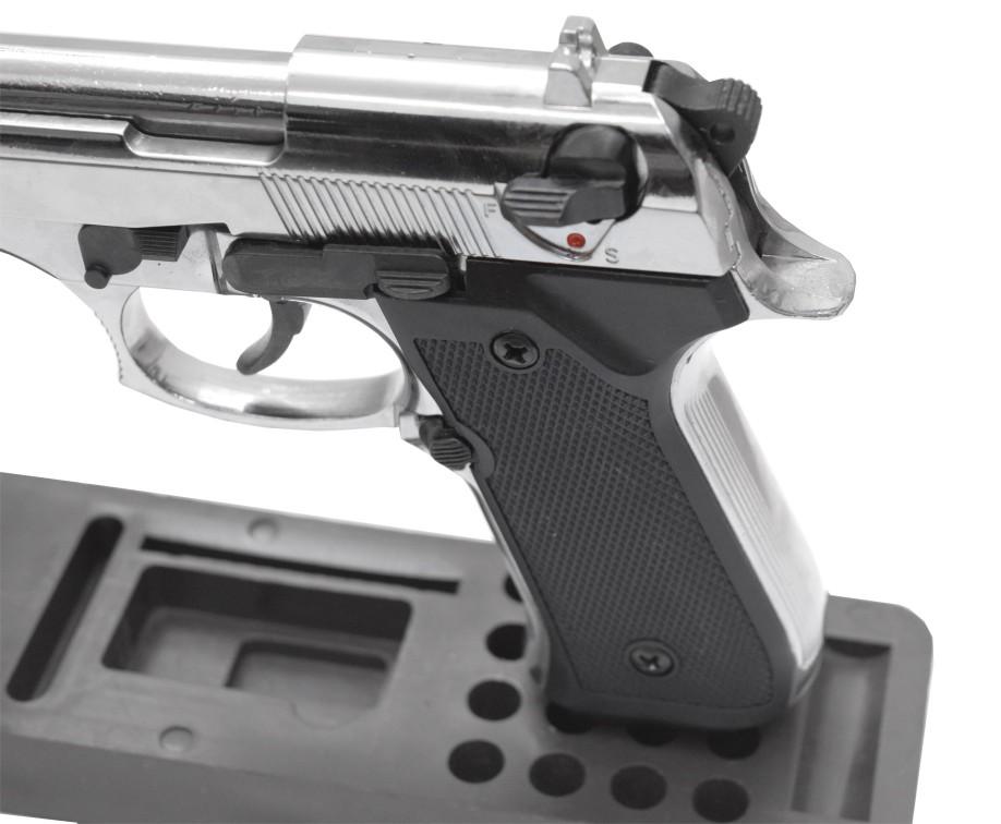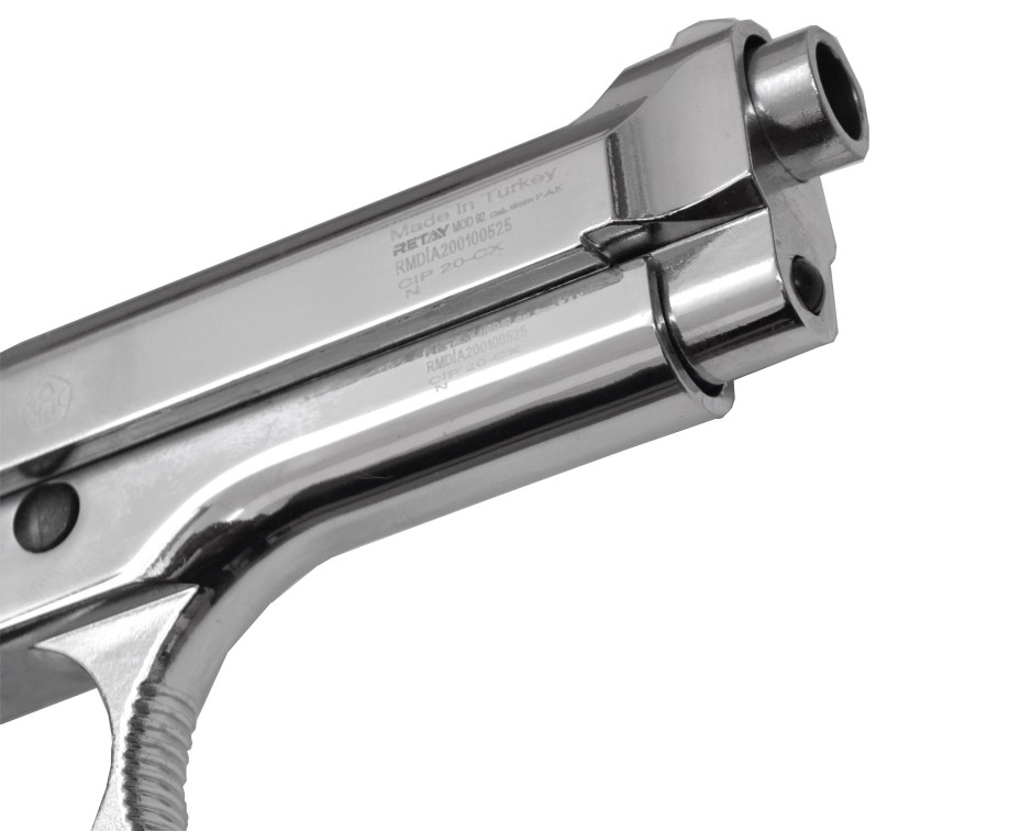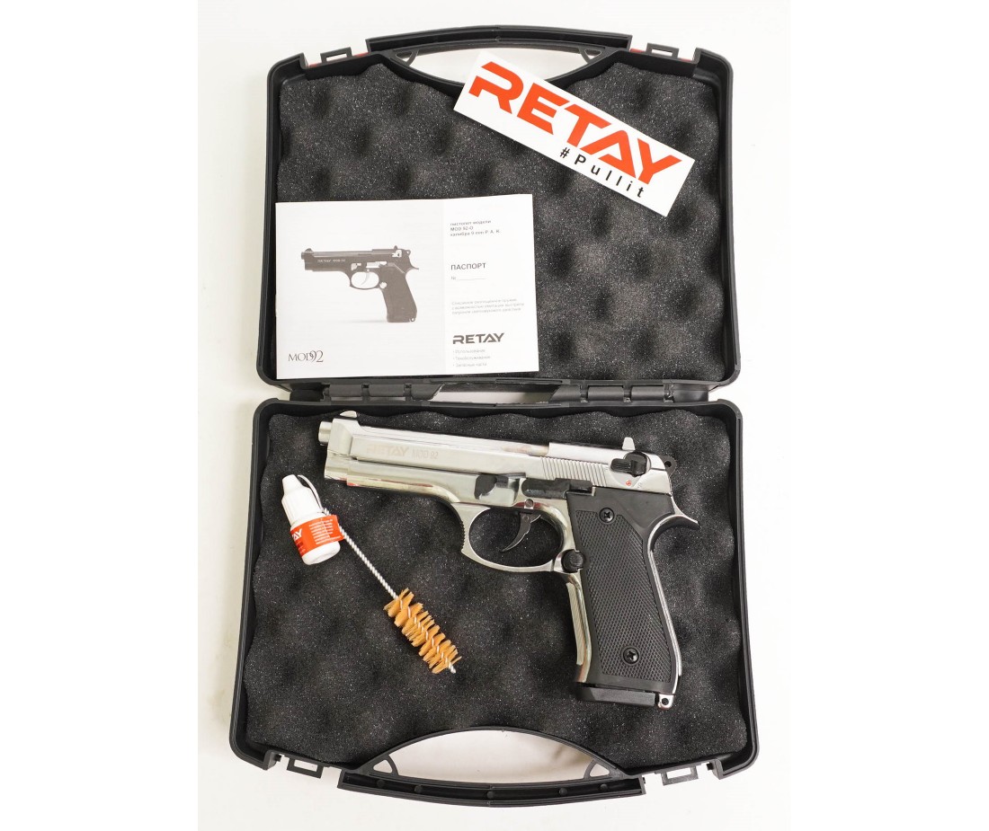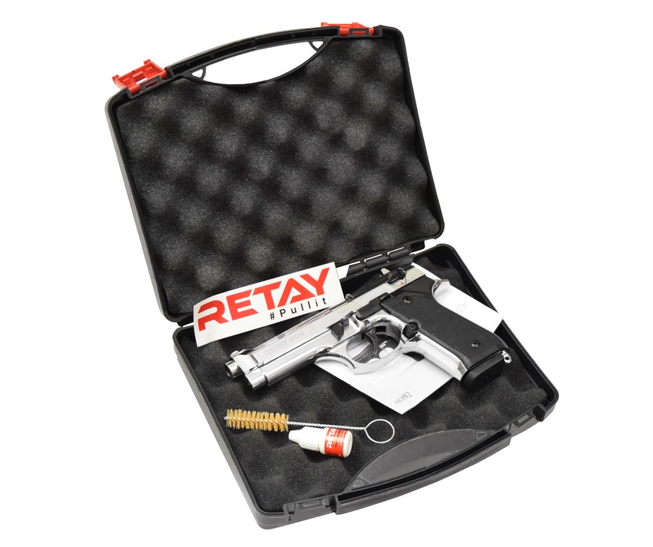 Retay MOD92 (Beretta) 9mm охолощенный – аутентичная копия боевого прототипа, подходит для получения опыта обращения с оружием, для коллекций, для имитации выстрела во время соревнований, в критической ситуации станет орудием самообороны.