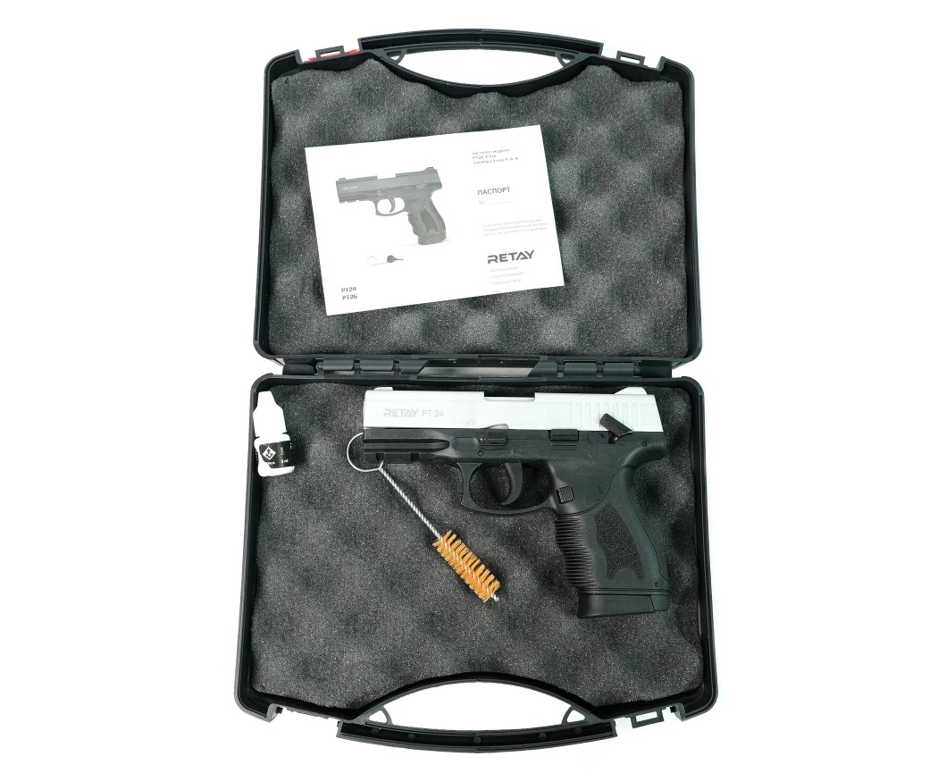 Retay PT24 (Taurus) 9mm охолощенный может использоваться во время соревнований в качестве стартового оружия, на съемках кино и в театре, поможет в получении навыков обращения с огнестрельным оружием, станет отличным подарком для ценителей качественных реплик боевого оружия современности.
