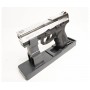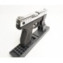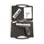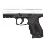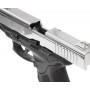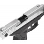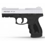 Рукоятка пистолета выполнена из полимера, ствол стальной. Цвет – никель. Длина пистолета 18 см. Поставляется в удобном кейсе с магазином, масленкой, шомполом, паспортом.