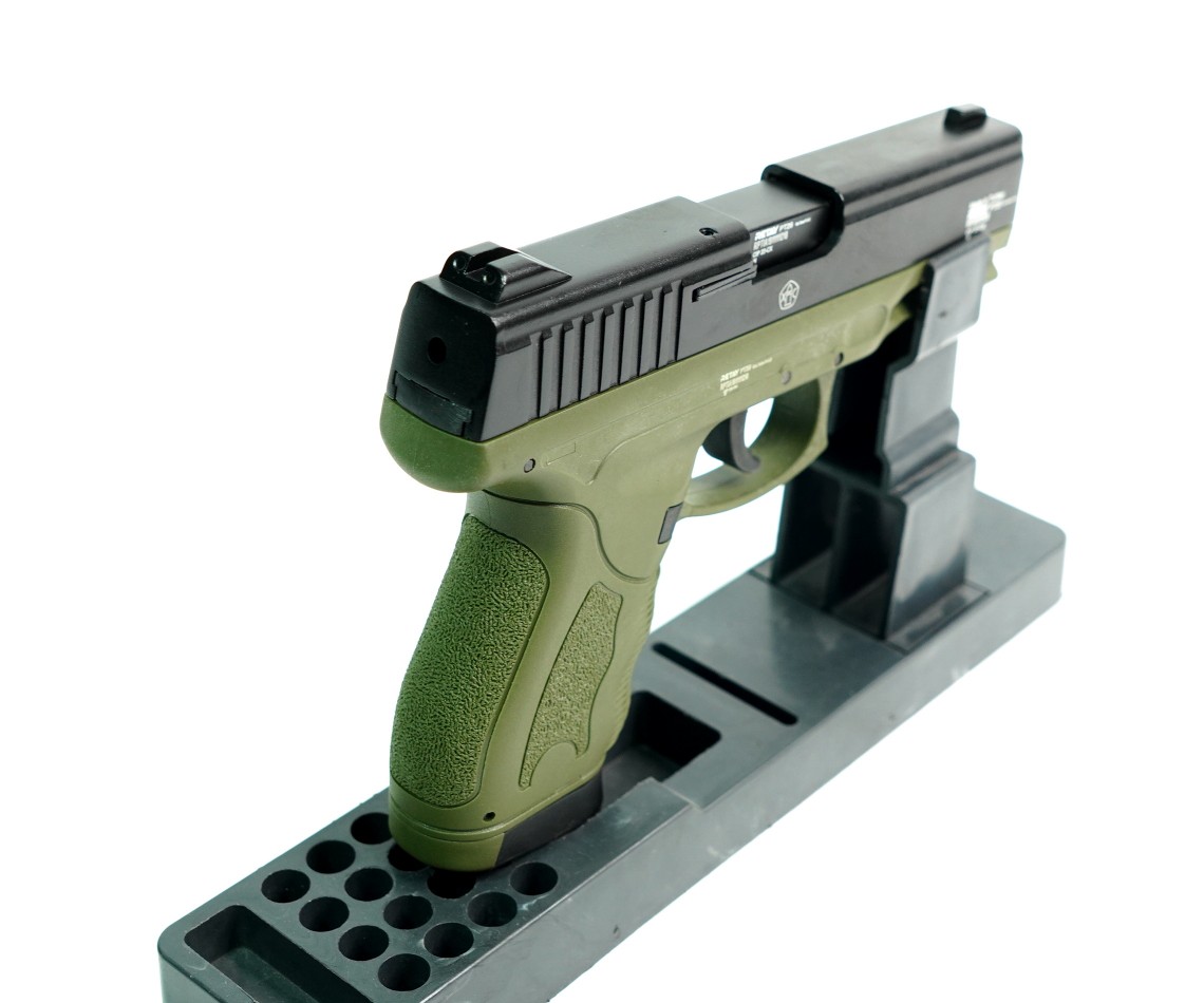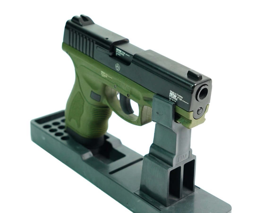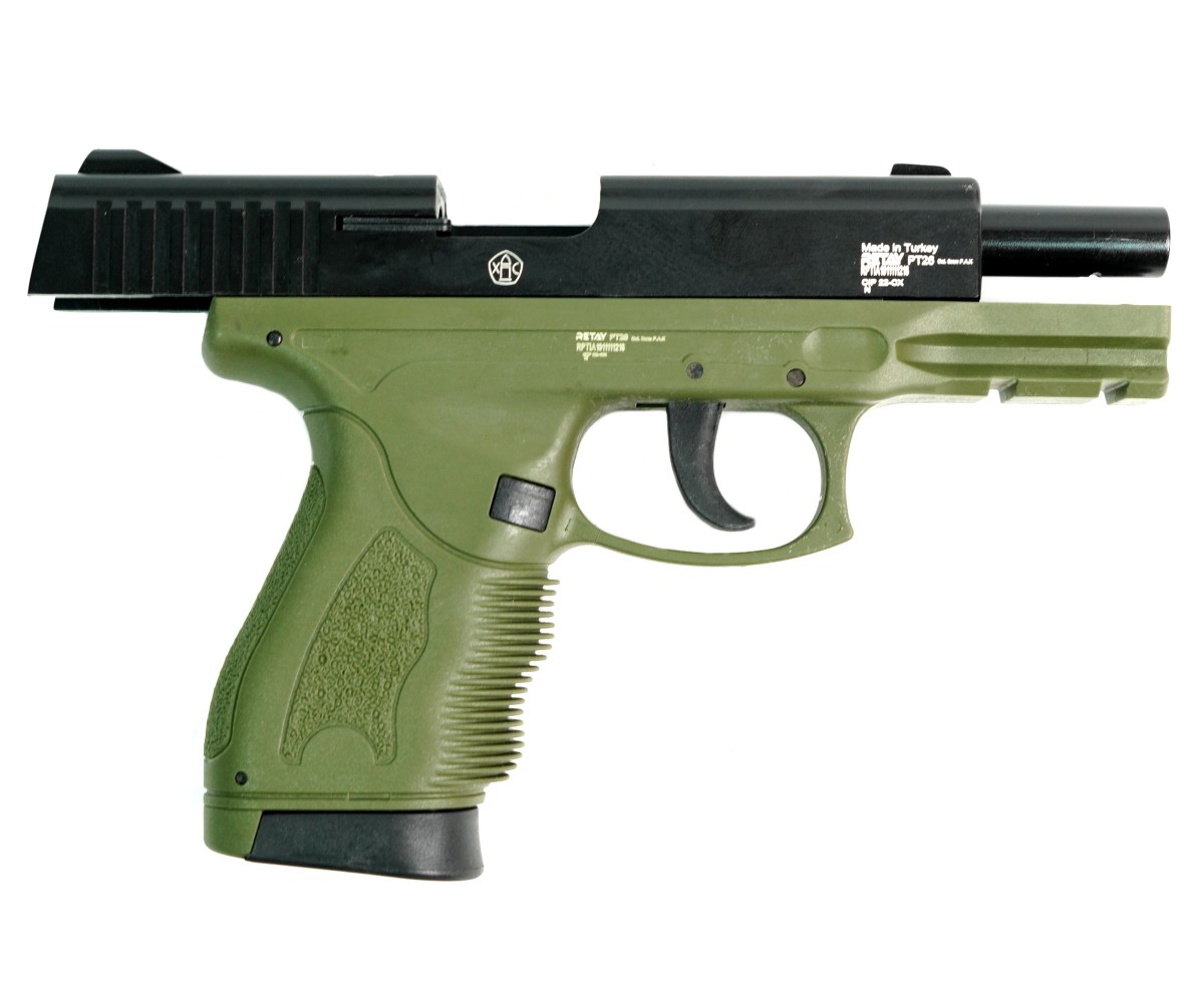 Охолощенный СХП пистолет Retay PT26 (Taurus) 9mm – это лишенная возможности стрелять боевыми патронами модификация от известного турецкого производителя, разработанная на основе бразильского самозарядного пистолета. Эта модель предназначена под свето-шумовые патроны калибра 9 мм (PA, P.A.K), которыми снаряжается 14-зарядный магазин.