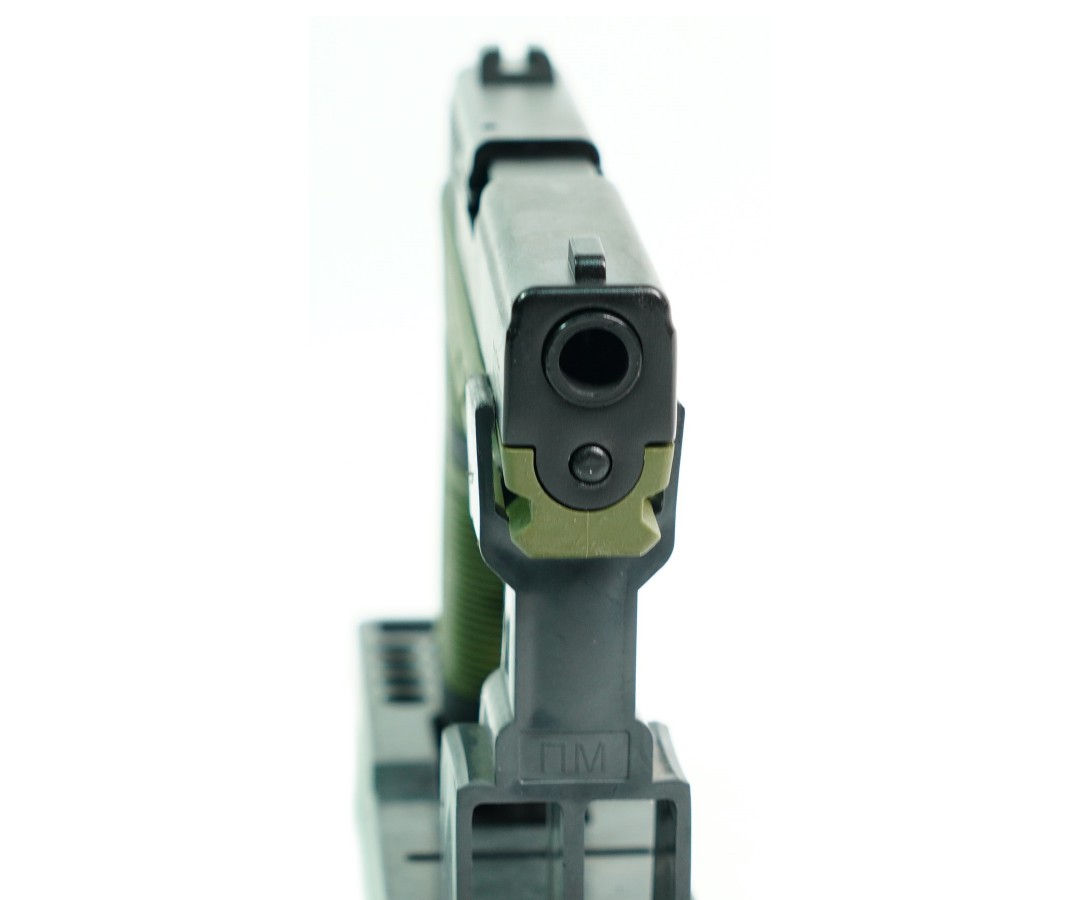 Внешний вид этой модификации идеально соответствует боевому экземпляру, очень трудно быстро определить, что это охолощенное оружие. Как и в боевом образце, здесь имеется мушка с целиком. Под стволом установлена направляющая планка. Более легкий, по сравнению с оригинальным боевым пистолетом вес (0,87 кг) обеспечен благодаря использованию облегченного металлического сплава.
