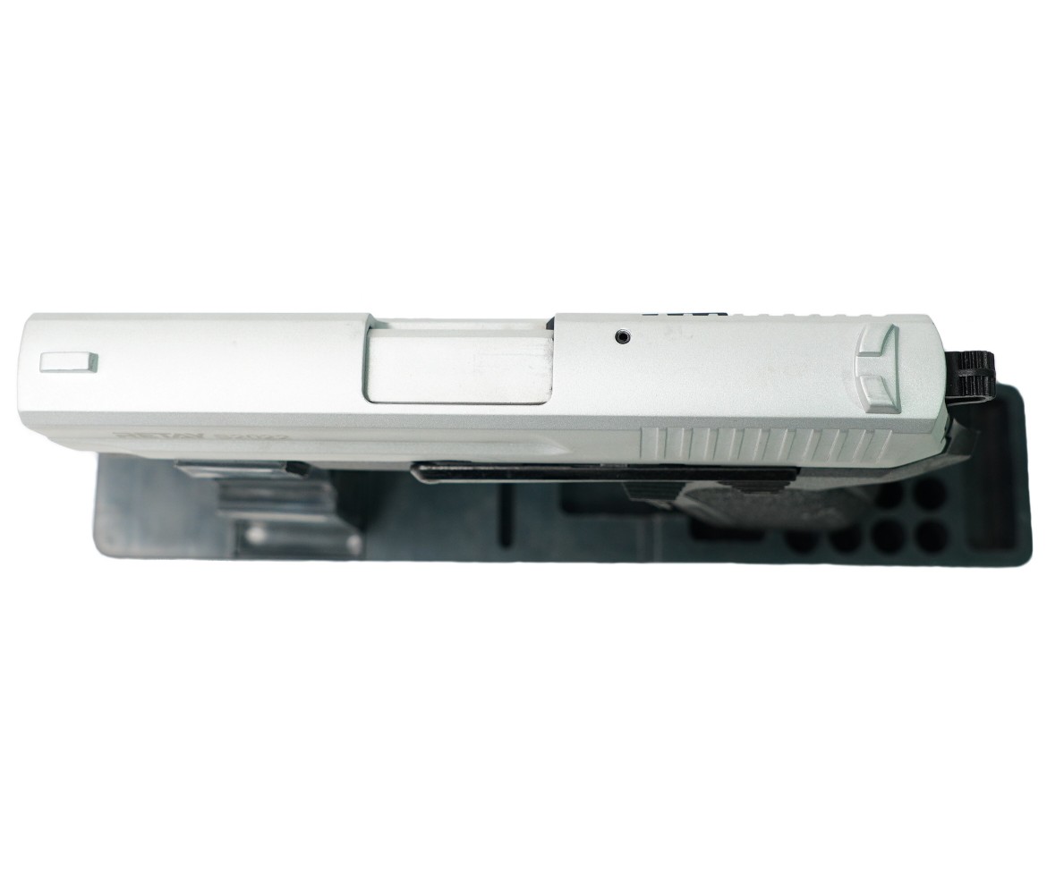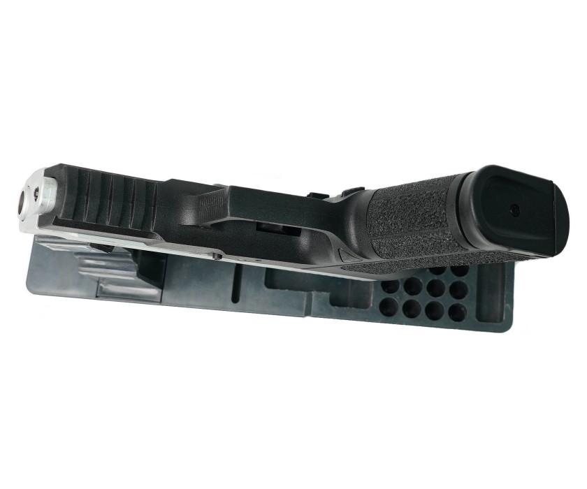 Вес пистолета, конечно, меньше оригинала – всего 0,92 кг, за счет использования облегченных материалов. Ствол стальной, корпус изготовлен из сплава zamak, на рукоятке имеются пластиковые накладки. Длина пистолета 18 см. Комплектация: кейс для транспортировки, масленка, магазин, шомпол, документы.