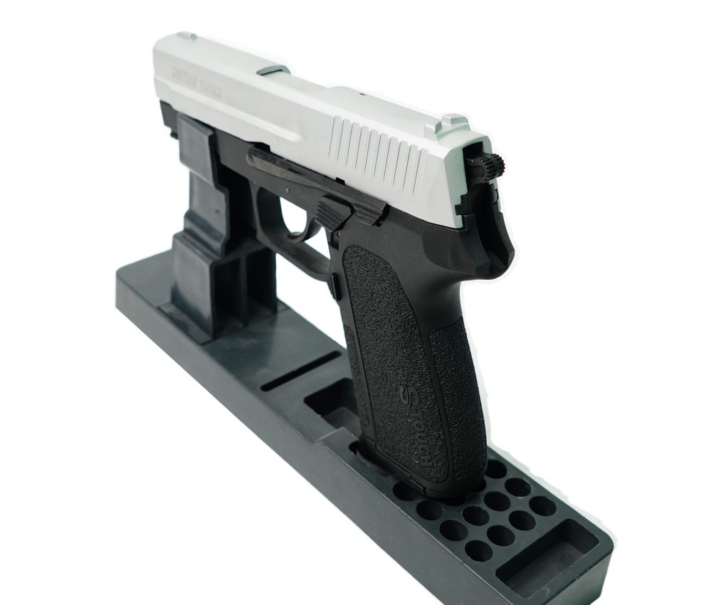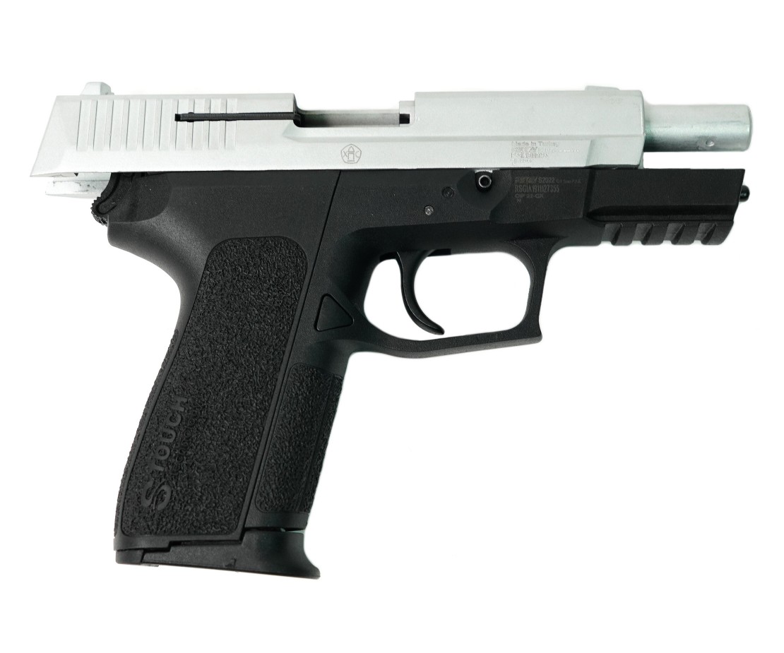 Охолощенный СХП пистолет Retay S2022 (Sig Sauer) 9mm – это изделие, не предназначенное для ведения боевого огня, реплика известной модели Sig Sauer SP2022 от турецкого производителя. Главная функция такой модели – осуществление громкого холостого выстрела. В ствол пистолета вставлена заглушка, что гарантирует невозможность прохождения через него твердых предметов. Такое охолощенное оружие предназначено исключительно для использования со свето-шумовыми патронами.