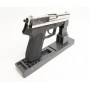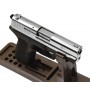 Вес пистолета, конечно, меньше оригинала – всего 0,92 кг, за счет использования облегченных материалов. Ствол стальной, корпус изготовлен из сплава zamak, на рукоятке имеются пластиковые накладки. Длина пистолета 18 см. Комплектация: кейс для транспортировки, масленка, магазин, шомпол, документы.