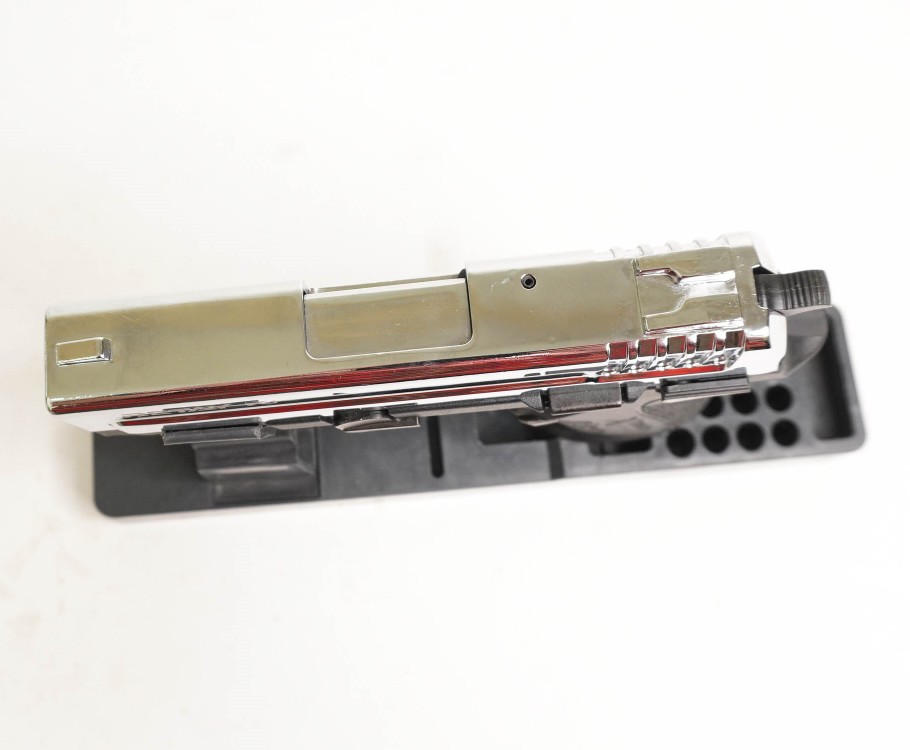 Модель подлежит частичной разборке (кроме ствола). Основной материал – достаточно прочный для деактивированного оружия сплав замак, ствол стальной, рукоятка пластиковая. Форма рукоятки анатомическая, с шероховатой поверхностью.