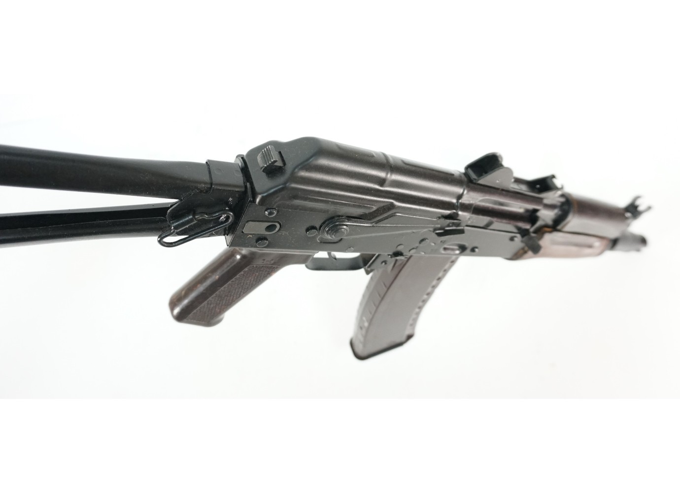 Магазин деактивированного автомат Калашникова АКСУ рассчитан на 10 боеприпасов — к этому обязывает закон об оружии, в соответствии с которым емкость магазина у гражданского оружия не может превышать 10 патронов. Стрельбу можно вести в полуавтоматическом режиме или в режиме «автоогонь». Все механизмы автоматики этого экземпляра находятся в рабочем состоянии. Калибр патронов — 5,45х39 мм. В процессе стрельбы и огонь, и дым из ствола выходят в полном объеме. Данная модификация отличается легкостью загрузки патронов в магазин, при этом имеет довольно мощную отдачу при выстреле.