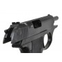 В процессе деактивации в стволе установили штифты, а также заварили паз для направляющей и приварили к серьге ствол. Назначение данного пистолета – имитация боевого выстрела в сопровождении громкого звука и огневой вспышки из ствола. Модель имеет УСМ двойного действия. Режим холостого огня – полуавтоматический.