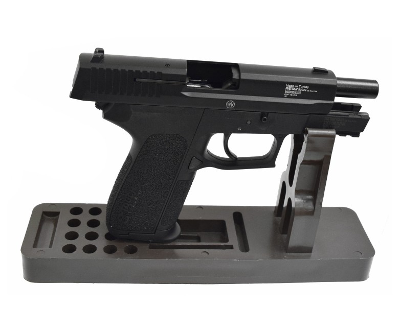 Охолощенный СХП пистолет Retay S2022 (Sig Sauer) 9mm – это изделие, не предназначенное для ведения боевого огня, реплика известной модели Sig Sauer SP2022 от турецкого производителя. Главная функция такой модели – осуществление громкого холостого выстрела. В ствол пистолета вставлена заглушка, что гарантирует невозможность прохождения через него твердых предметов. Такое охолощенное оружие предназначено исключительно для использования со свето-шумовыми патронами.