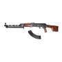 Охолощенный СХП ручной пулемет Калашникова РПК-СХ (ВПО-926) – настоящее оружие, стреляющее холостыми боеприпасами. Ручной пулемет Калашникова был создан на базе АКМ и взят на вооружение в 1961 году. РПК пришел на смену пулемету Дегтярева, главным его достоинством была взаимозаменяемость деталей с другим имеющимся на вооружении оружием и его унифицированность по системе и патрону.