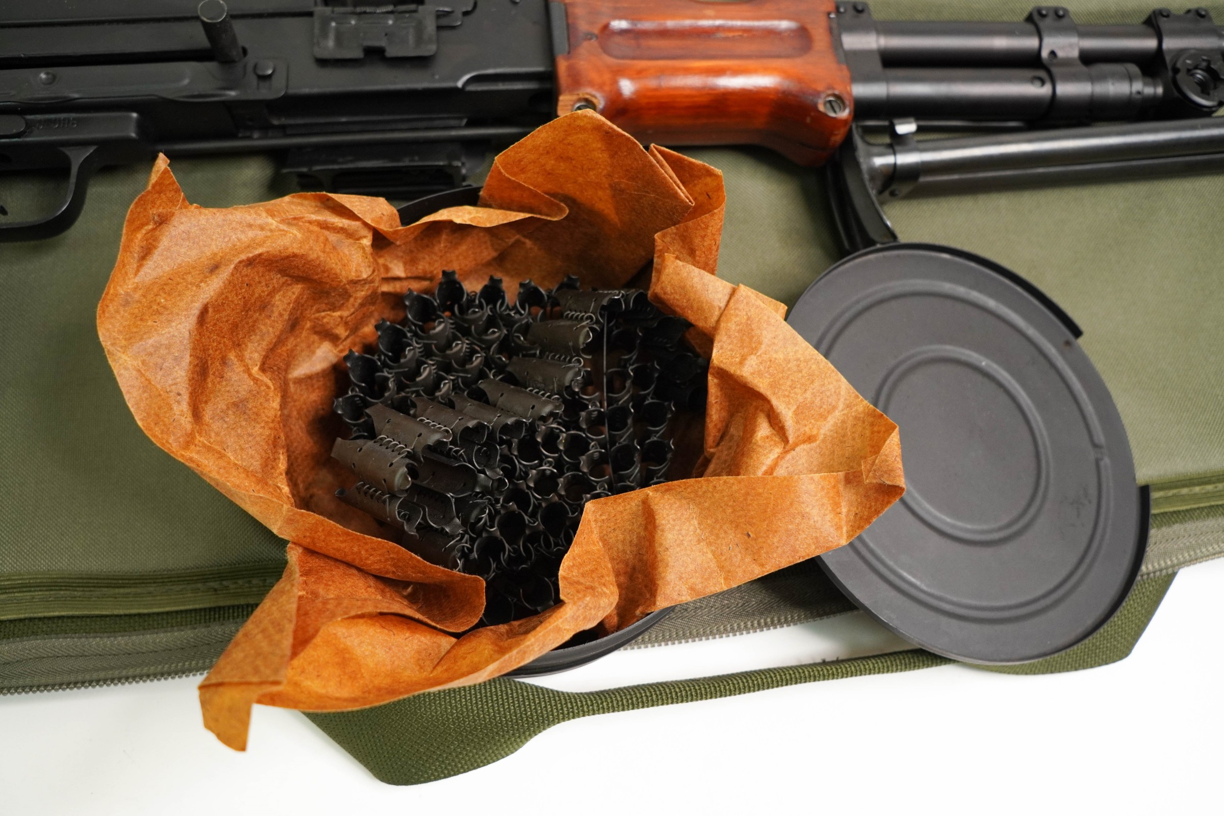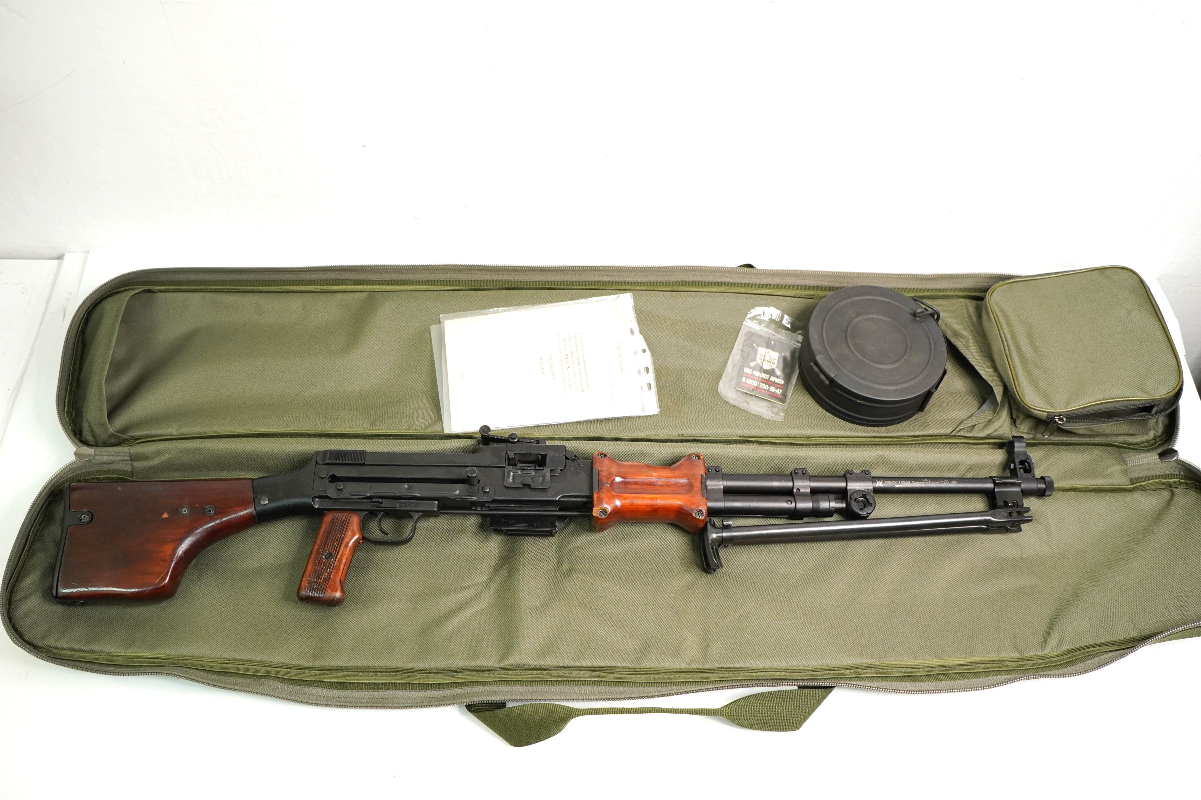 Комплектация (?): | ручной пулемет, патронный барабан, лента патронная, шомпол, паспорт (инструкция), коробка (либо без нее в пакете) |