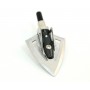 Данная модель наконечника выполнена как двухлезвийный вариант с вспомогательными небольшими лезвиями перпендикулярными основным. Два основных лезвия наконечника делают достаточно широкий рез, а вспомогательные лезвия увеличивают проникающую способность, а также расширяют диаметр раневого канала. Благодаря такой необычной конструкции данный вариант охотничьих наконечников Topoint TP235 МИГ стал одним из самых опасных для зверя.