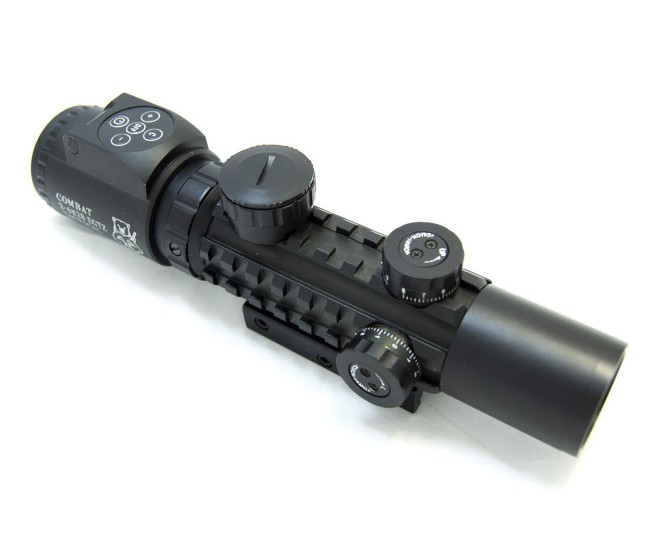 Прицел 2-6x28 марки Combat не имеет большого увеличения, зато служит отличным помощником в охоте, особенно, если объект являются движущимся или небольшого размера. Для тех, кто стремится улучшить точность попадания, имеется возможность оснащения дополнительным оборудованием в виде планки Weaver, которая обеспечит точную и комфортную стрельбу.