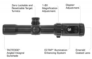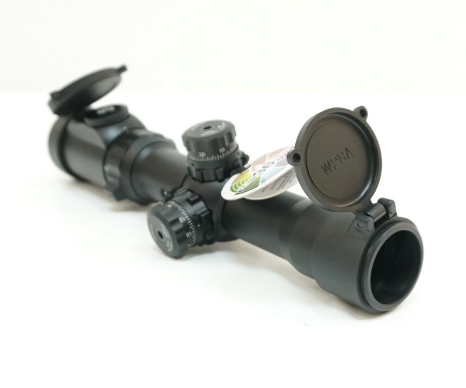 Кратность прицела (1-8 крат) дает возможность использовать этот инструмент для поражения целей на различных дистанциях. Изменение кратности прибора производится специальным кольцом на окуляре. Линза объектива 28 мм имеет просветляющее покрытие в несколько слоев, обеспечивающее качественное изображение при любом освещении.