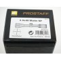 Корпус прицела Nikon Prostaff 3-9x40 M NP произведен из сплава алюминия, следовательно, изделие прочное, очень легкое и весит 425 гр. при своей длине в 314 мм. У прибора покрытие лакокрасочное, матовое. Прицел предохранен от пыли, влажности, герметичен, а благодаря наполнению азотом, уплотнительным кольцам, его оптика не запотевает. Крепежные кольца обладают диаметром - 25,4 мм. Подойдет козырек для объективов, диаметр которых 40, 50 мм, предохраняющий от солнца.