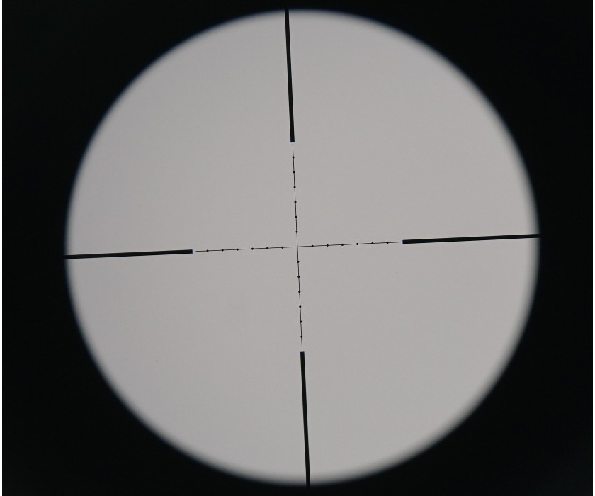Используемая здесь прицельная марка – Мил-Дот, она располагается во 2-ой фокальной плоскости и не масштабируется при увеличении кратности прицела. Прицел с такой сеткой максимально долговечен и надежен, он не боится ни транспортировок, ни мощной отдачи, так как сетка нанесена на линзу при помощи лазера. Присутствует отстройка от параллакса.