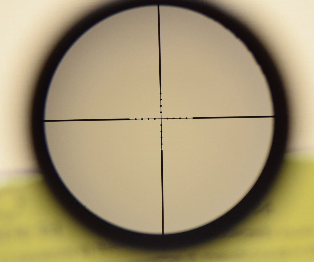 Прицельная сетка случае – Mil Dot, с миллирадианными точками на перекрестии, что позволяет стрелкам с опытом довольно точно оценивать расстояние до цели, с использованием специальной формулы. Прицел отстраивается по горизонтали и вертикали винтами, находящимися в центральной части корпуса. Винты защищены специальными колпачками, и имеют храповый механизм, предусматривающий регулировку по делениям. Один клик равен ¼ МОА.