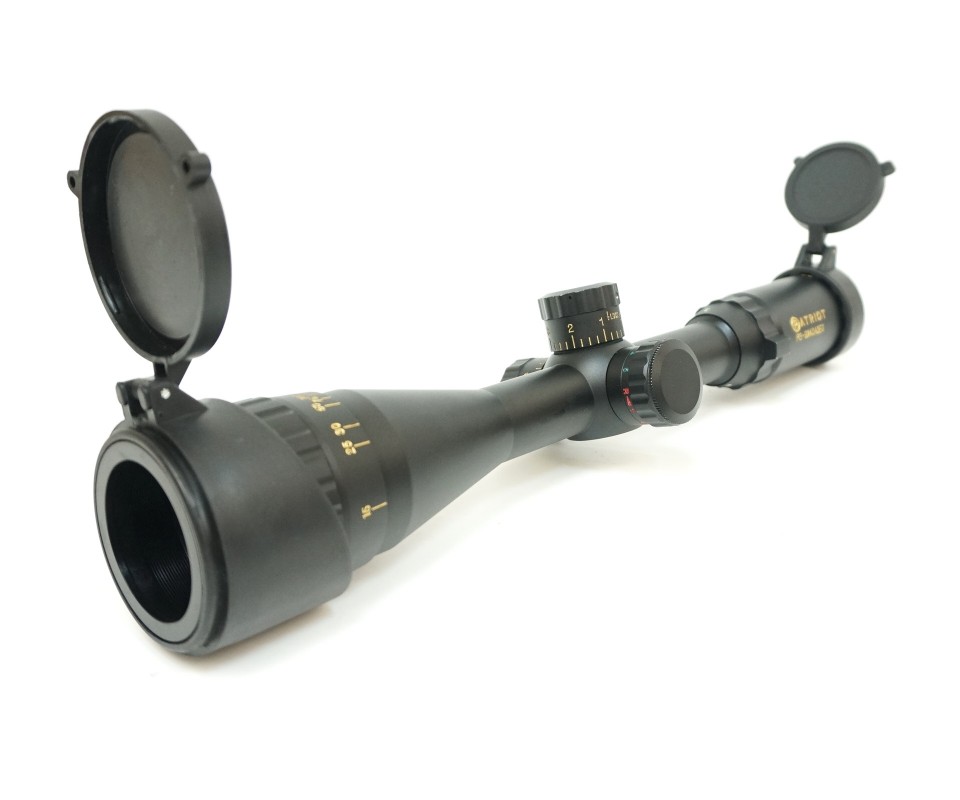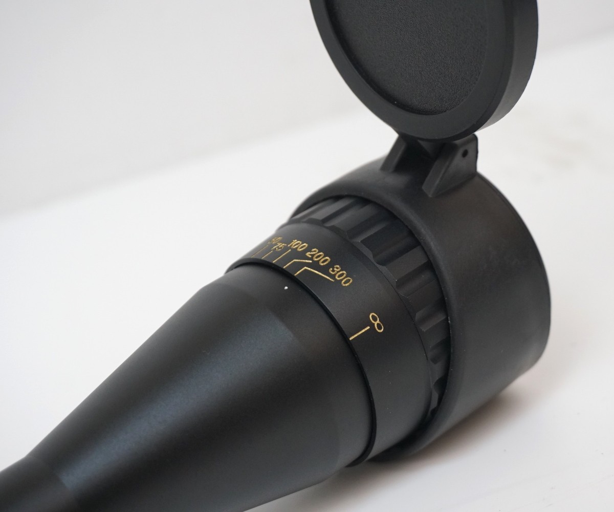 Диаметр объектива прицела – 40 мм, а диаметр его трубки – 25,4 мм (или 1 дюйм). Присутствует отстройка от параллакса в диапазоне от 10 ярдов до бесконечности, регулировочное кольцо расположено на объективе. Прицел имеет подсветку прицельной сетки (два цвета), с возможностью регулировать ее яркость. Поправки по вертикали и горизонтали производятся с шагом в четверть МОА.