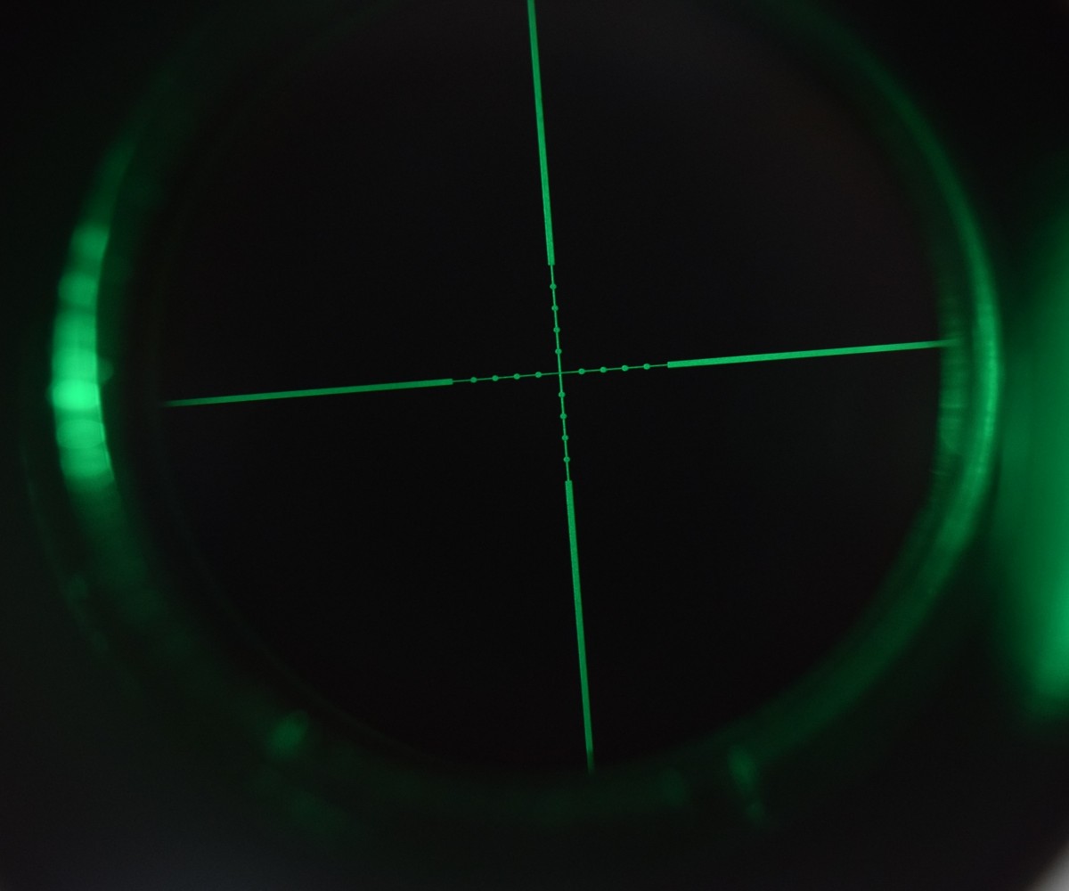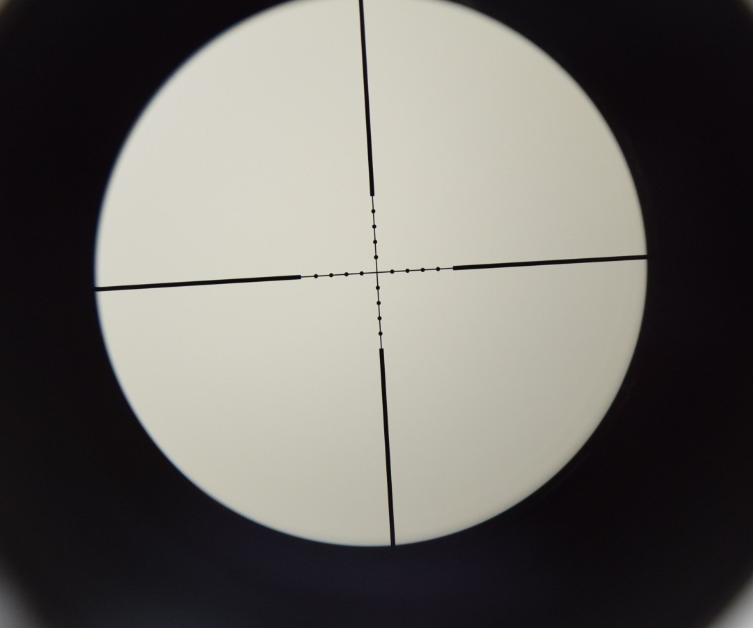Линзы зафиксированы кольцами, чтобы исключить их смещение и риск снижения герметичности прицела. Барабанчики механизма ввода корректировок снабжены рифлением для удобного использования и точности настроек. Использование в данном устройстве прицельной сетки Mil Dot позволяет получить стрелку возможность весьма точно оценить расстояние до объекта благодаря миллирадианными точкам.