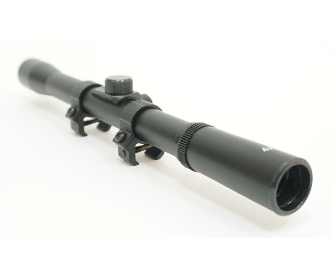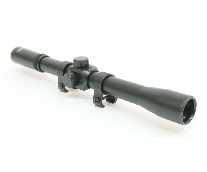 Оптический прицел с кронштейном 4х20, крест – разумный выбор для начинающих стрелков, возможность получения первого опыта стрельбы с оптикой.