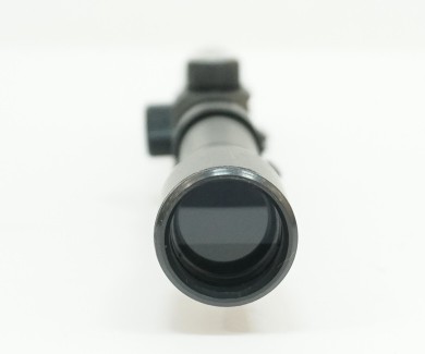 Объектив здесь диаметром 20 мм, а трубка прицела – диаметром 18 мм. Прицел имеет заводскую отстройку от параллакса, подсветка отсутствует. Прицельная марка – классический крест, для внесения поправок в 2-х основных плоскостях используются пара барабанчиков в центре корпуса.