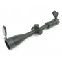 Кратность изменяется с помощью маховика, расположенного на окуляре прицела, диапазон кратности – 3-12 раз. Прицельная сетка – визирная Милдот, реализована подсветка и возможность изменения ее яркости барабанчиком на центральном узле. Чтобы настроить сетку, используются барабанчики на резьбе, с кликовым механизмом регулировки, клик равен ¼ МОА. Линза объектива имеет диаметр 44 мм.