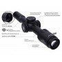Прицел отличается прочным корпусом из алюминиевого сплава с азотным заполнением, которое препятствует запотеванию устройства при скачках температур. Кольцевая фокусировка на окуляре помогает быстро отстроить оптический прицел под зрение владельца. Прицел имеет красную подсветку на 6 уровней яркости.
