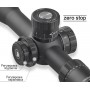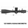 Прицельная сетка расположена в первой фокальной плоскости и выполнена в виде популярной сетки SLT IR-MIL, что позволяет стрелку точно вносить поправки на ветер и другие внешние факторы. Кольцевые барабанчики для регулировки позволяют настроить положение прицельной сетки с точностью до 0.1 миллирадиана на 100 метров.