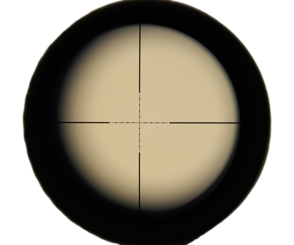 Прицельная сетка 2 (Mil-Dot), расположенная во второй фокальной плоскости (SFP), с увеличением кратности остаётся неизменно тонкой. При этом угловые размеры сетки пропорционально изменяются. Отстройка параллакса осуществляется кольцом на объективе прицела (AO) от 13,7м до бесконечности.