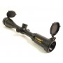 Прицел имеет двухцветную подсветку – зеленого или красного цвета, это дает возможность эксплуатировать устройство при плохой освещенности либо при работе по слабоконтрастным мишеням. Линзы прицела защищены специальными крышками с резьбой. Материл – алюминиевый сплав хорошего качества. Весит прицел 0,62 кг при длине 34,5 см. В комплекте – элемент питания для подсветки, инструкция, защитные крышки и фибра для протирания линз.
