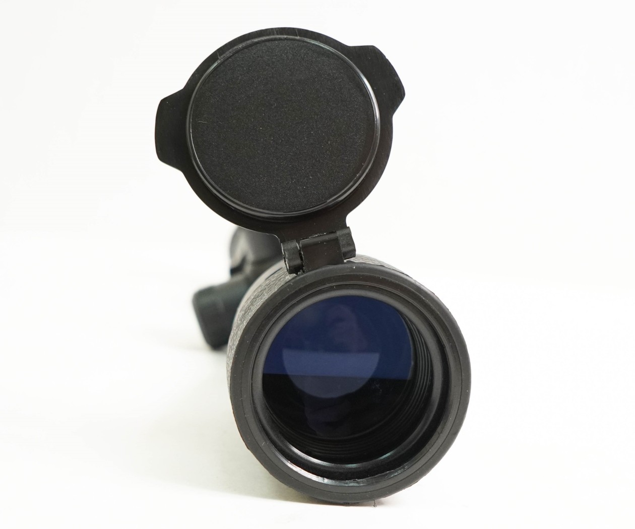 Объектив модели 40 мм, диаметр трубки 24,5 мм – такой прицел может быть установлен на любое современное оружие – пневматику или огнестрельное. Здесь использована прицельная сетка Mil-Dot (проволочная) – самая популярная прицельная марка у опытных стрелков и охотников, маховички поправок корректируют точку прицеливания (1 щелчок маховичка равен ¼ МОА).