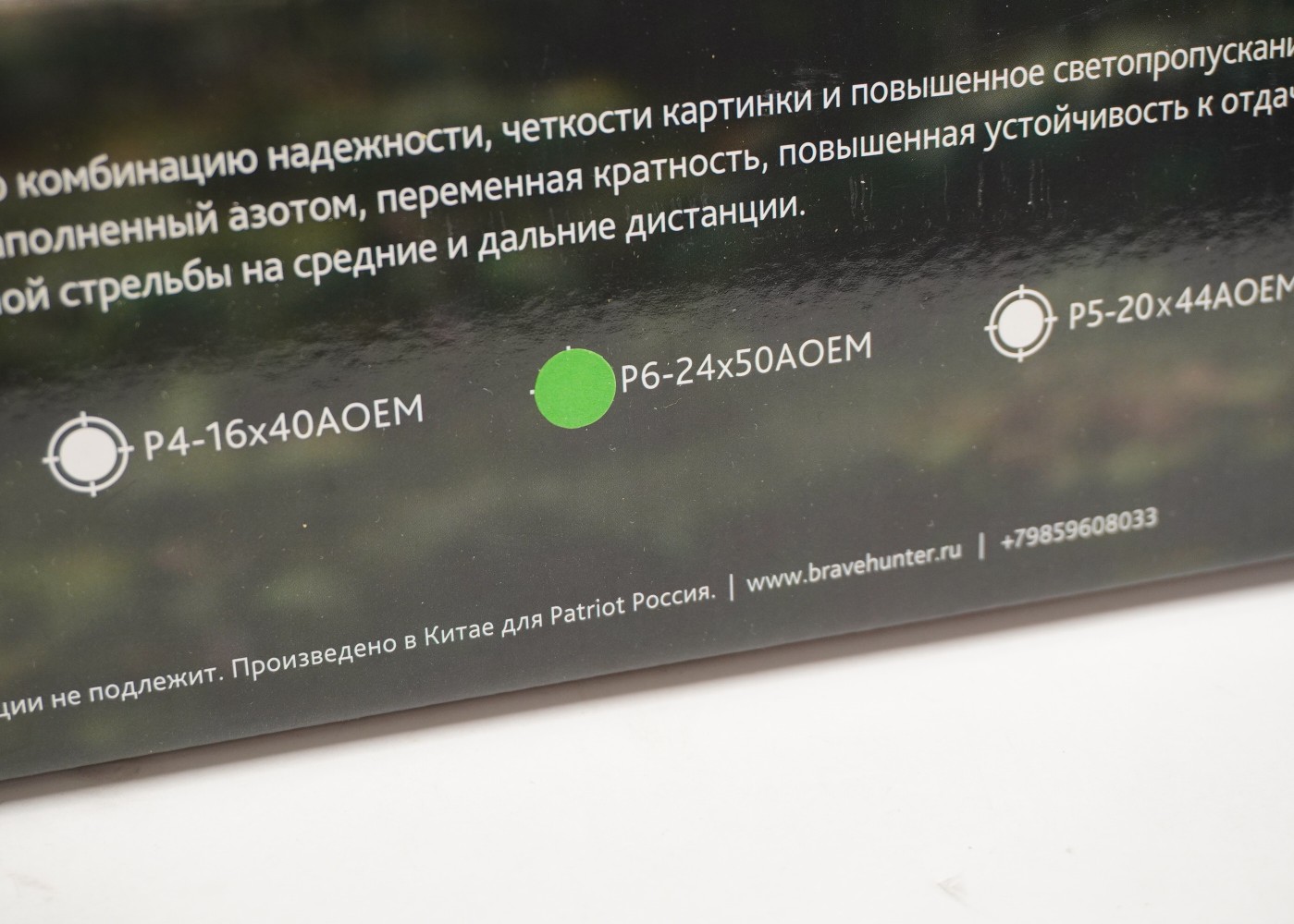 Описание оптического прицела Patriot Trophy P6-24x50 AOEM:
