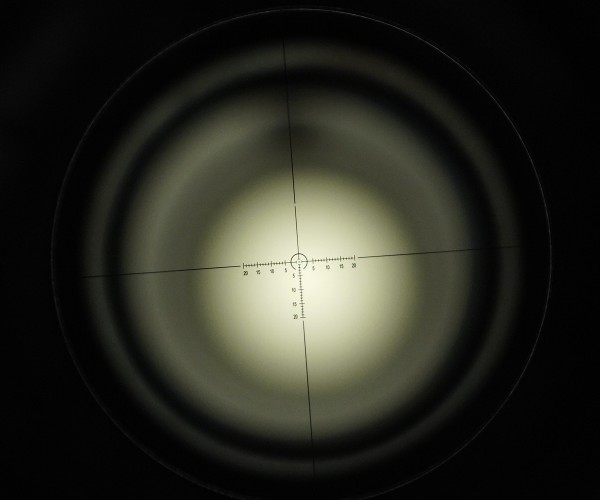 Прицельная сетка со шкалой поправок вытравлена на стекле и расположена во 2 фокальной плоскости окуляра. При изменении кратности прицела размер сетки в поле зрения не меняется. Сетка хорошо видна при пасмурной погоде и в сумерках благодаря зеленой/красной подсветке с плавно регулируемой яркостью.