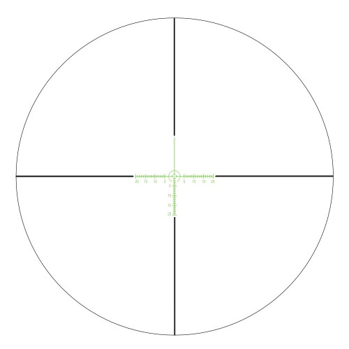 Прицельная сетка со шкалой поправок вытравлена на стекле и расположена во 2 фокальной плоскости окуляра. При изменении кратности прицела размер сетки в поле зрения не меняется. Сетка хорошо видна при пасмурной погоде и в сумерках благодаря зеленой/красной подсветке с плавно регулируемой яркостью.