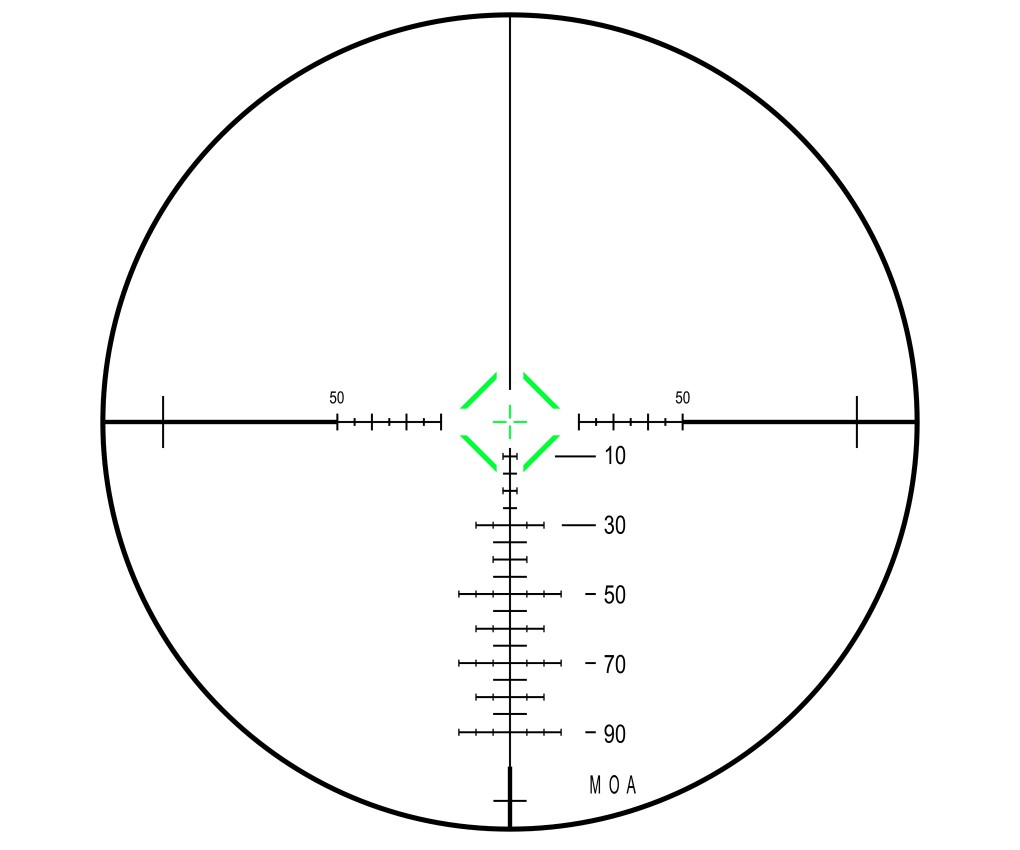 Прицельная сетка: | тактическая, ц.д. 5 МОА, гравировка на стекле |