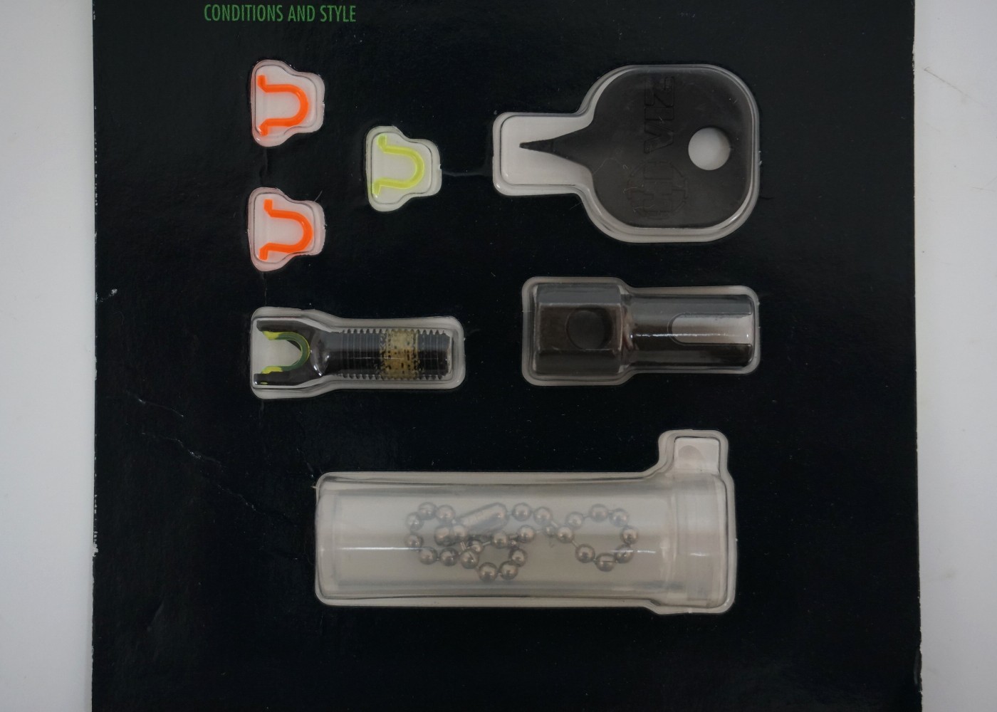В комплект входят 4 оптоволокна: 2 - красных и 2 - зеленых. Ключ для смены оптоволокон. Кейс для хранения.