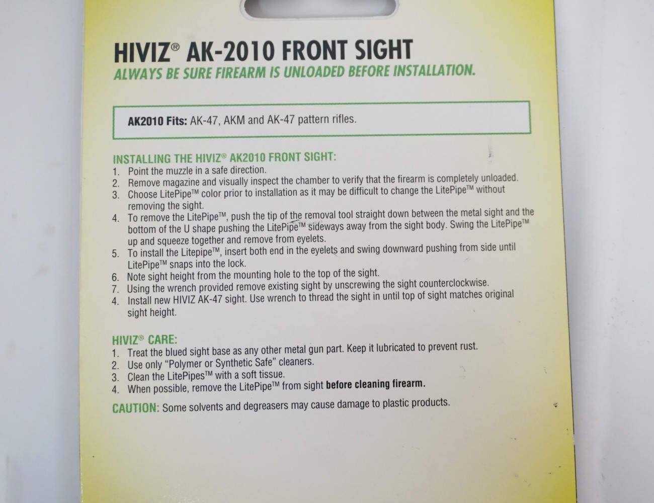 Описание Оптоволоконной мушки HiViz AK2010 для АК (сайга, тигр, вепрь):