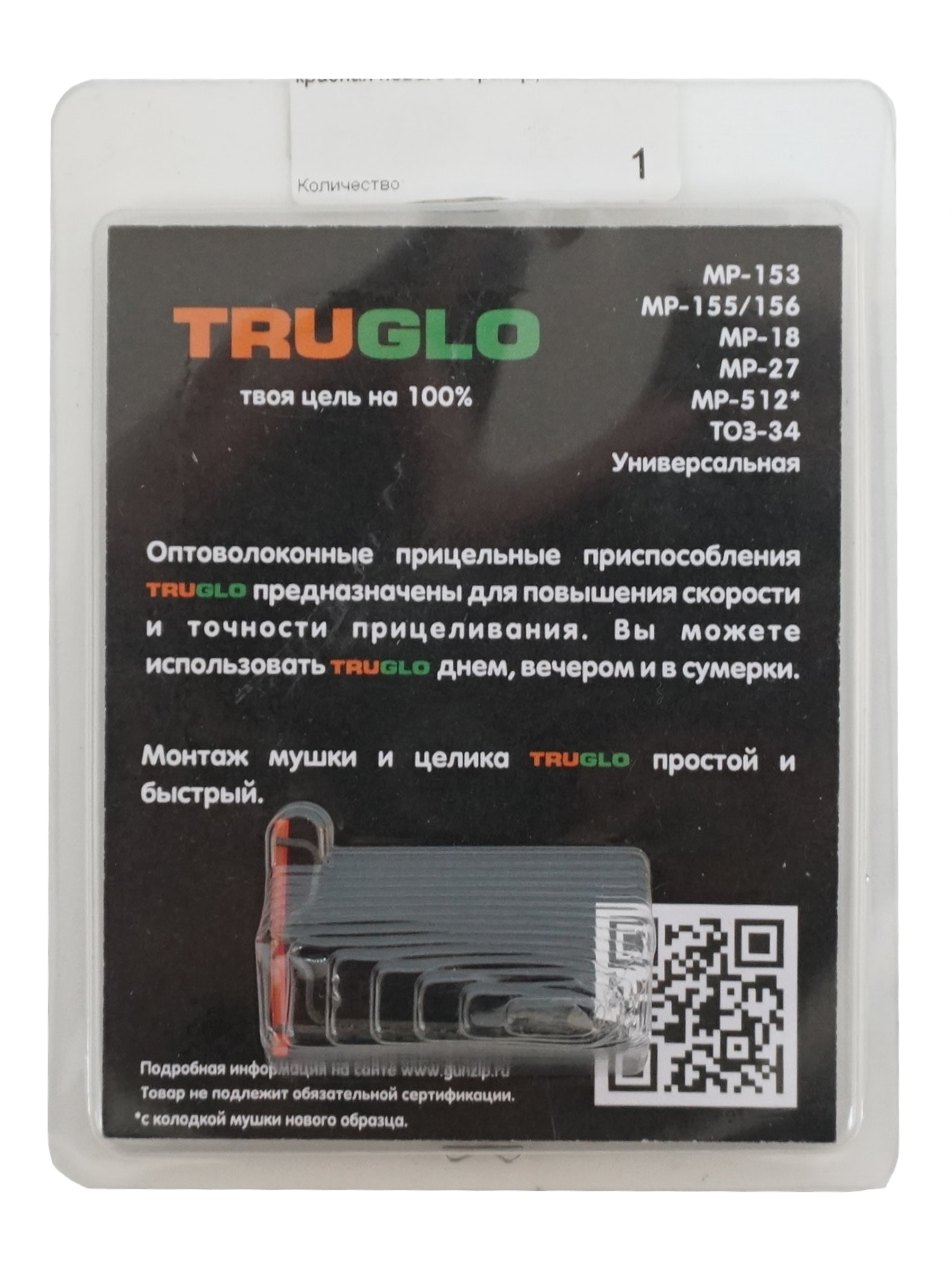 Оптоволоконные прицельные приспособления предназначены для повышения скорости и точности прицеливания. Вы можете их использовать днем, вечером и в сумерки. Монтаж мушки и целика Truglo простой и быстрый.