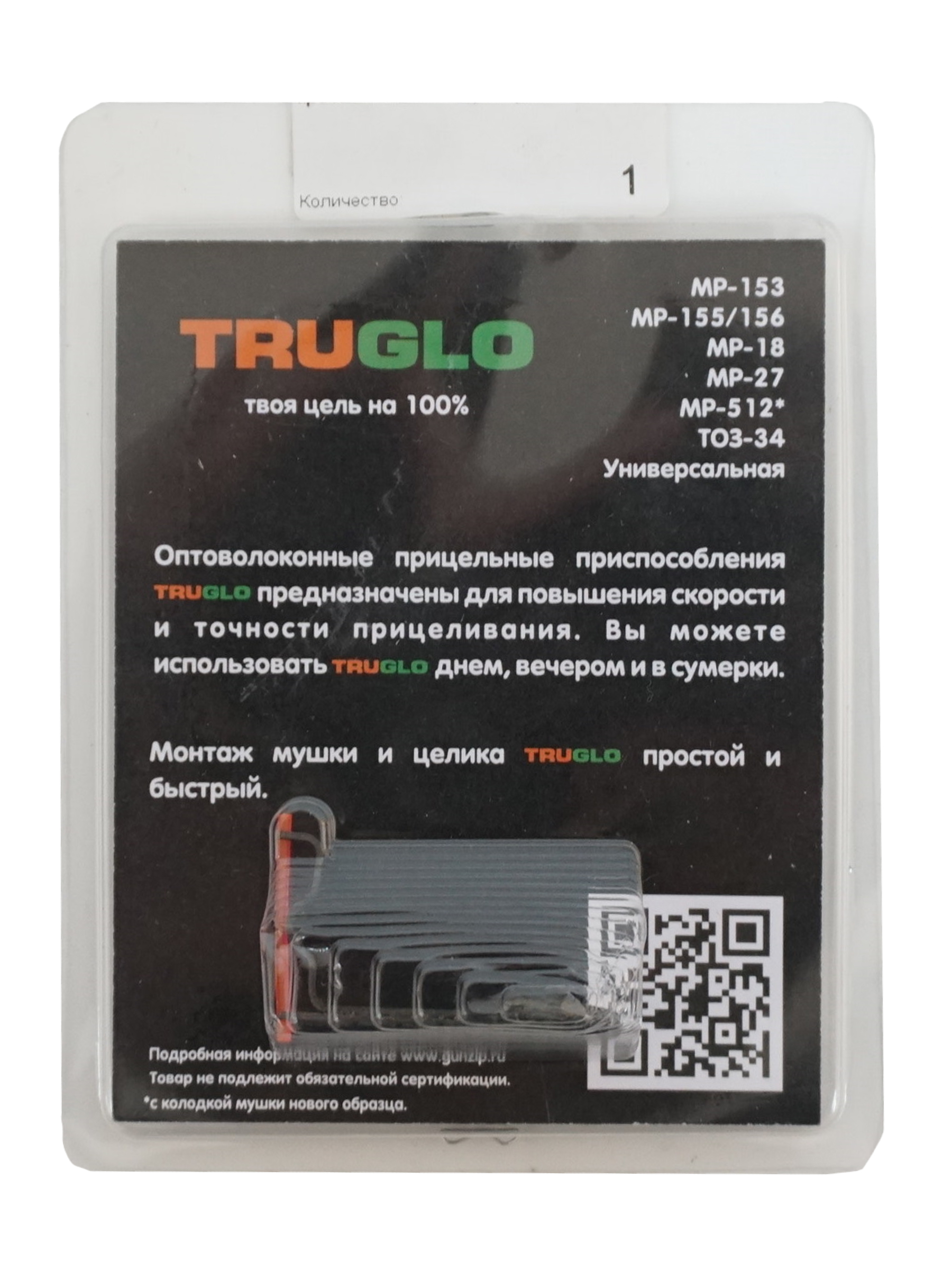 Оптоволоконные прицельные приспособления предназначены для повышения скорости и точности прицеливания. Вы можете их использовать днем, вечером и в сумерки. Монтаж мушки и целика Truglo простой и быстрый.