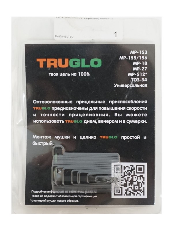 Оптоволоконные прицельные приспособления предназначены для повышения скорости и точности прицеливания. Вы можете их использовать днем, вечером и в сумерки. Монтаж мушки и целика Truglo простой и быстрый.
