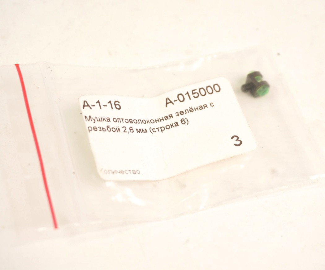 Мушка оптоволоконная зеленого цвета для пневматических винтовок. Резьба 2,6 мм.