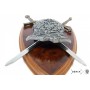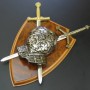 Панно с кирасой и 2 мечами включает в себя легендарные образцы средневекового вооружения.