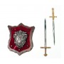 Панно настенное с нагрудником и 2-мя мечами включает в себя легендарные образцы средневекового вооружения.