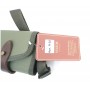 Патронташ из синтетической ткани, двухрядный, для переноски на плече. Два несъемных закрытых двухрядных подсумка (по 10 патронов в каждом). Застежка на кнопке. Патроны в подсумке фиксируются прорезиненной лентой. Изделие по бокам укреплено прочной синтетической тесьмой. Регулировка длины осуществляется двумя пластиковыми пряжками (удержание за счет трения). Изделие прошито прочными лавсановыми нитками. Ремень из прочной нейлононовой стропы (Paracord), цвет зеленый. Язычки подсумков изготовлены из натуральной кожи - цвет коричневый.